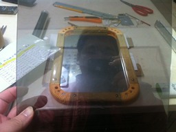 由於小弟是一個不及格的Maker,所以直接去商店買了有外框的鏡子、壓克力展示架跟汽車隔熱紙,希望有朝一日能夠手做木工框,用雷切切自己喜歡的壓克力圖型ㄒ^ㄒ。接下來這個步驟,將汽車隔熱紙貼到壓克力板上,貼的時候的技巧跟貼手機包膜差不多,就是細心。包好之後就得到一塊貼著汽車隔熱紙的壓克力板,只要貼單一面就好了。